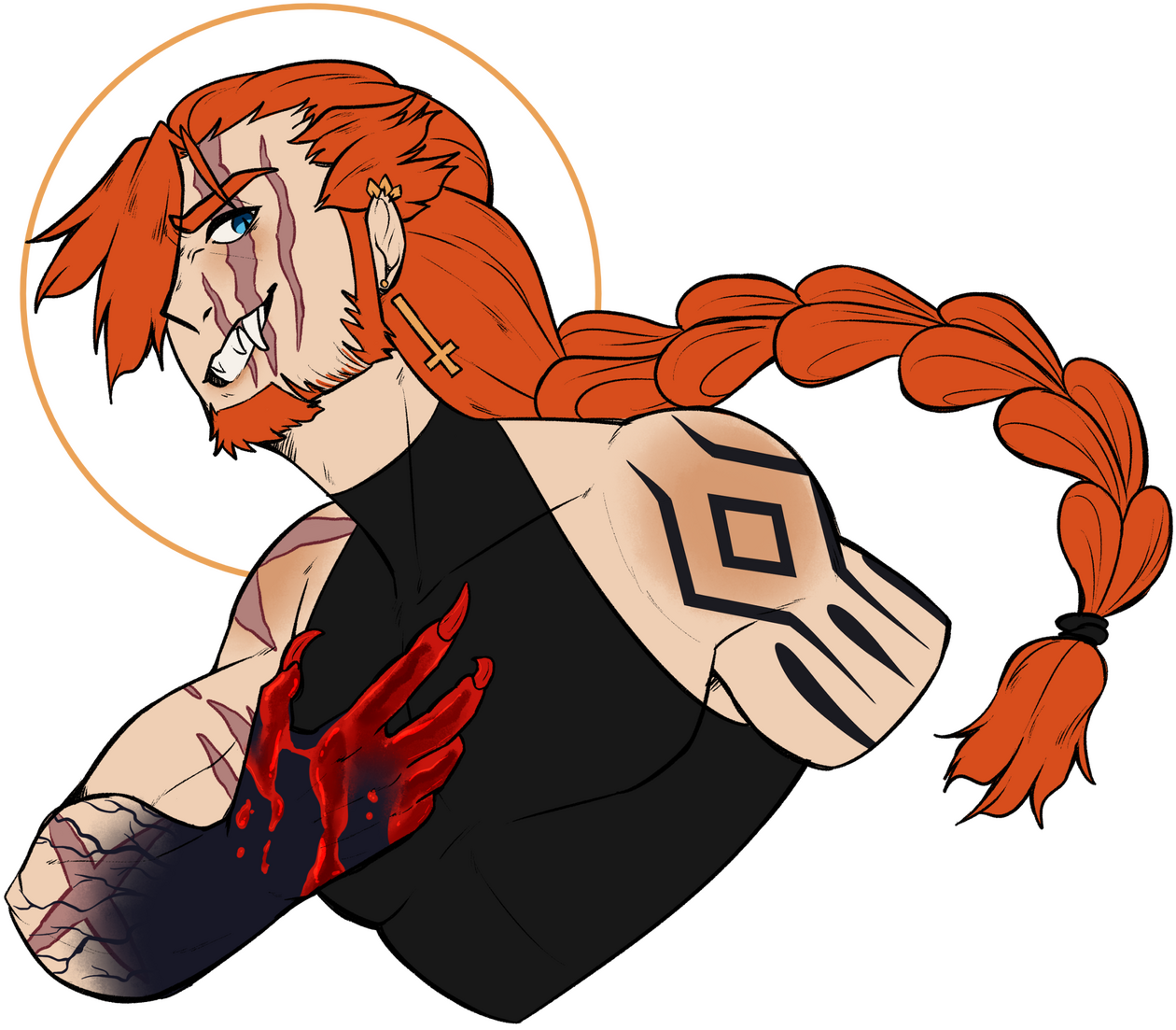 Arthur was formerly a target for one of Drake's bounties. A start like that should have either ended Arthur's life, or at least put a schism between them — instead they became inseparable. Together, they are part of something called the Heathen Brood.Arthur is the target of many of Drake's antics, including but not limited to the videos taken of Arthur being a doofus on Drake's tomestone; hijinks involving drinking games; or tricking the poor thing into one of Drake's hardcore bullshit thrill-seeking tenures.In spite of Drake's antics, Arthur is one of the few to see Drake's vulnerabilities and is privy to information few would otherwise be able to glean. Arthur's gentler, quieter nature erodes some of Drake's rough edges.Drake has a rivalry with the little beast Arthur calls a carbuncle. He has punted Yohann into the aether many a time.▸ Man, Beast